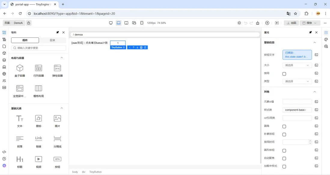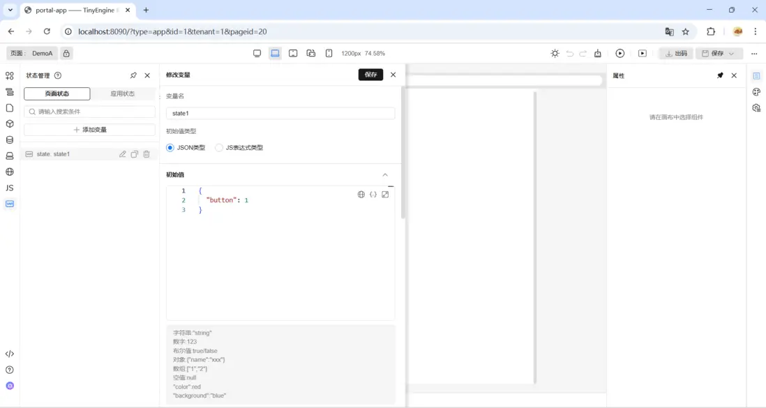 1). 創建頁面 DemoA,並添加頁面狀態 state1: