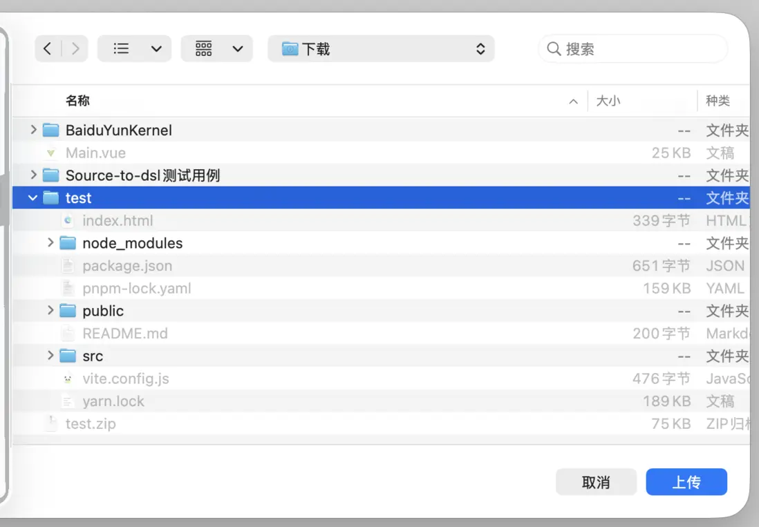 選擇項目壓縮包則選擇vue項目zip進行上傳: