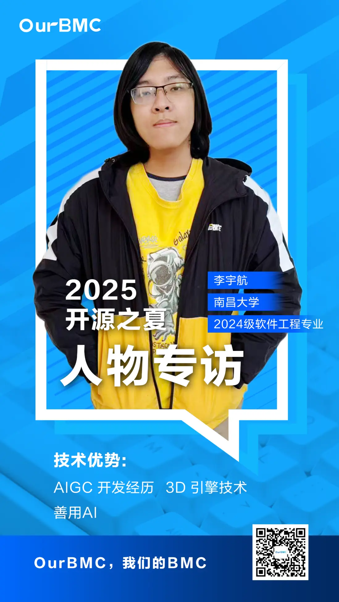 2025年,開源之夏與 182 家優秀開源社區緊密合作,OurBMC社區也積極參與其中。今天,我們採訪 “基於三維引擎的BMC硬件展示” 的開發者李宇航(個人Github:https://github.com/olddove-laoge)。
