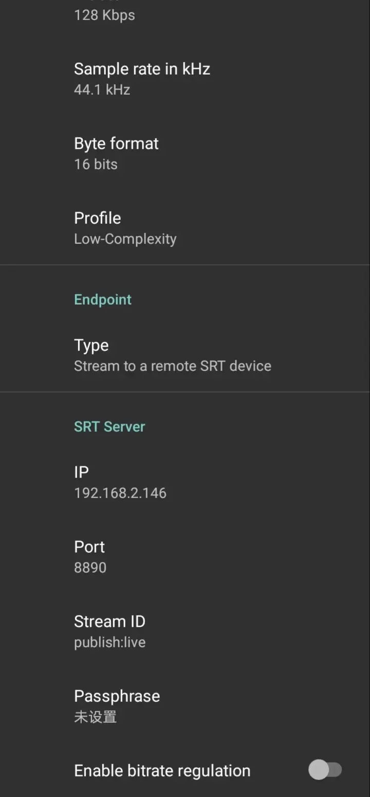 2、SRT Server區域的IP字段:填流媒體服務器的IP。