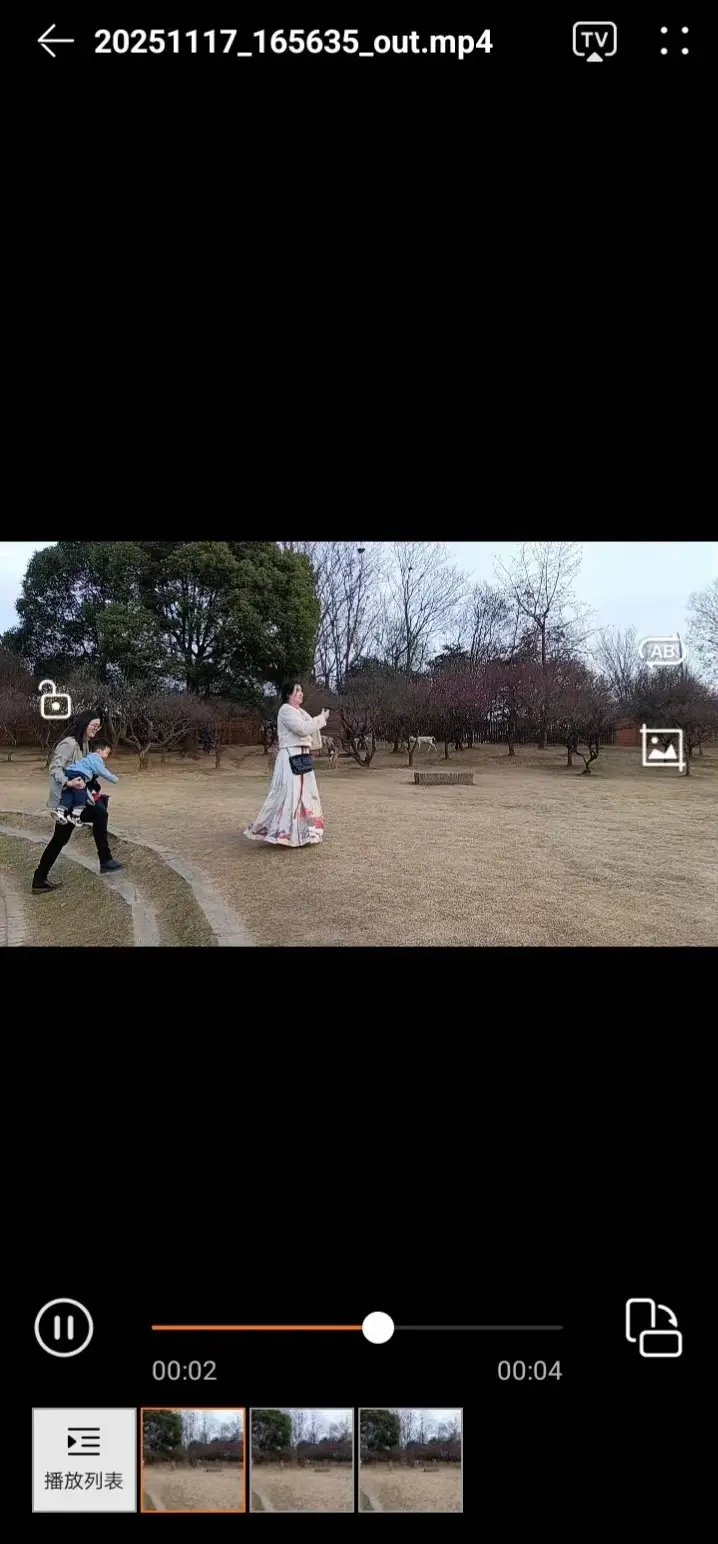 裁剪之後的視頻片段默認放在App安裝路徑下的files目錄,完整路徑為“我的手機/Android/data/com.joe.epmediademo/files/Download/out.mp4”。稍等片刻EpMedia也會自動跳到系統的默認播放器界面,開始播放剪輯好的視頻片段如下圖所示: