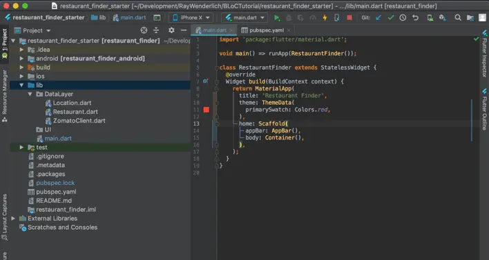 下載並使用你最喜歡的 IDE 打開 starter 項目工程。本教程將使用 Android Studio,如果你喜歡使用 Visual Studio Code 也完全可以。確保在命令行或 IDE 提示時運行 flutter packages get,以便下載最新版本的 http 包。