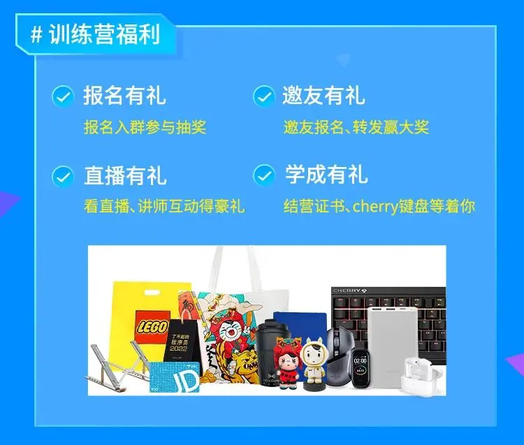 報名入羣即可參與抽獎,課堂參與互動更有豪禮相送!完成課程學習還有機會贏cherry鍵盤!