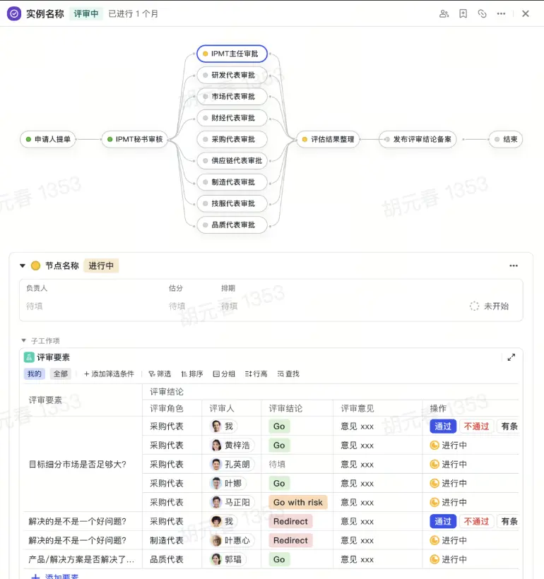- IPD 強調在關鍵節點(例如立項決策、方案評審、可行性評審、發佈評審)設立門控機制。飛書項目支持將這些評審流程內置為“流程節點”,並實現在線提交、評審、審批、歸檔。