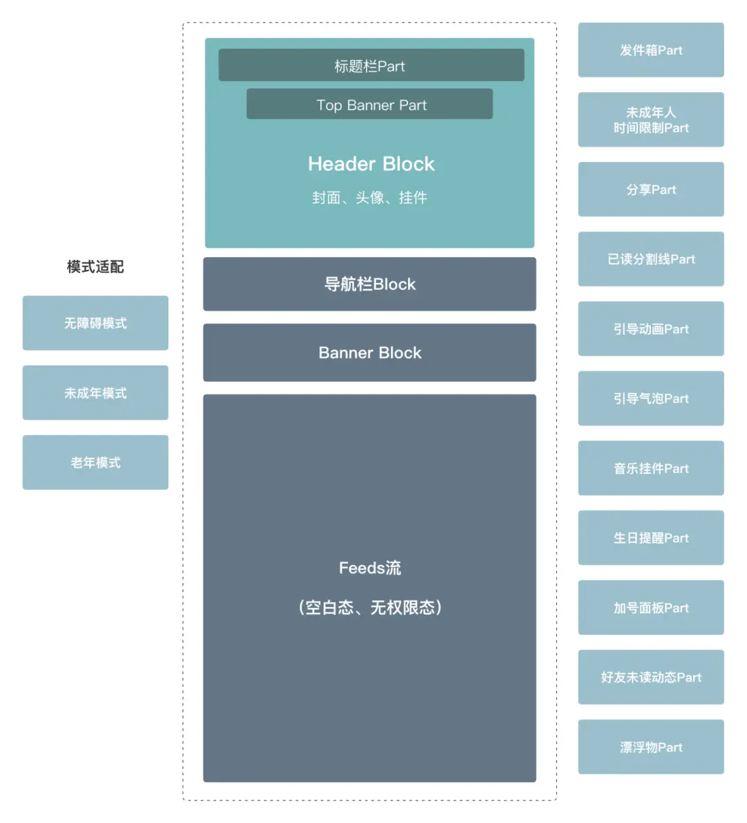 經過 Part 的改造,頁面級的功能都被拆分為子模塊。但 Feeds 流整體作為一個 Part,複雜度仍然過高,我們需要設計一套新的框架,對 Feeds 流中的卡片進一步拆解。