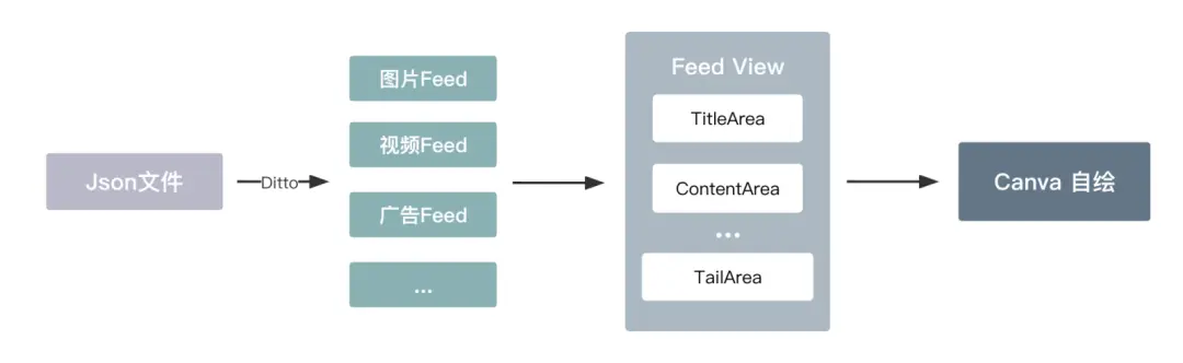 而每個 Area 的佈局由 json 文件下發,Ditto 框架解析後使用 canvas 自繪,完成顯示。