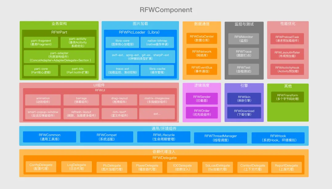 最重要的是,RFW 的核心組件都可由上層注入代理實現,這使其並不依賴於手 Q 的運行環境,也避免了業務側邏輯入侵底層代碼。