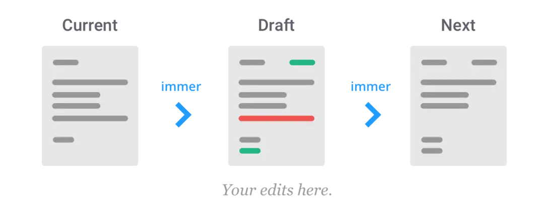 在 Immer 中,data之上的proxy被稱為 Draft(草稿):
