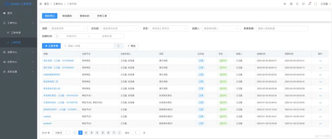 每個頁面,都是有多個篩選項,便於用户找到需要的工單,同時也支持表單數據的全局檢索,導出等功能,非常的便捷。