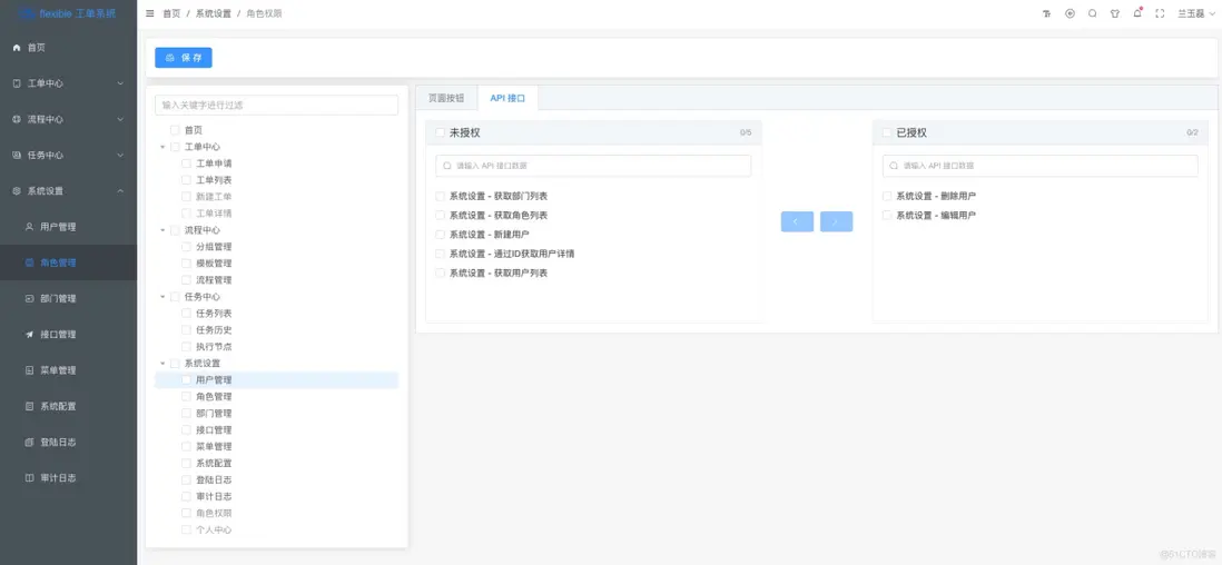細粒度的權利管理,包括頁面按鈕、API接口。