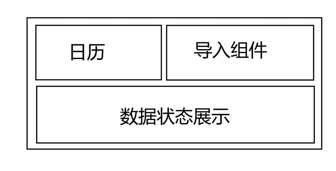 頁面分為上下佈局,上邊模塊包含左側日曆和右側導入部分,下邊模塊是數據狀態部分。日曆和導入組件固定高度420px;日曆寬度500px;數據狀態寬度100%,高度自適應。