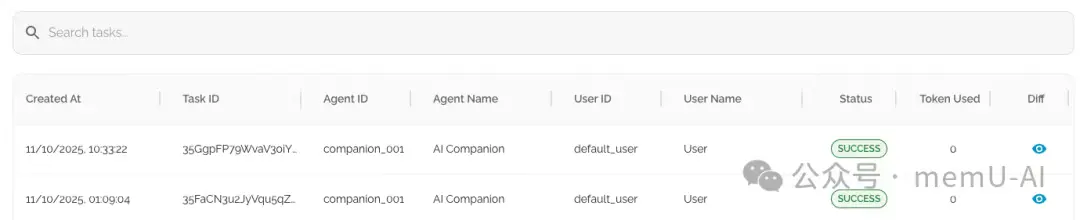 通話結束後,系統會將本次對話相關記憶存儲在 memU。