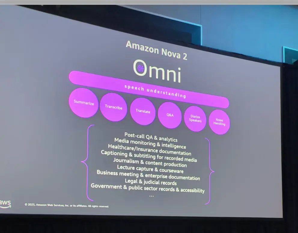 AWS 宣佈推出 Amazon Nova 2 Omni 的預覽版,這是一款行業首創的、集成了多模態推理與圖像生成能力的通用模型。該模型能夠處理文本、圖像、視頻和語音輸入,並生成文本和圖像輸出,極大地簡化了多模態 AI 應用的開發和管理。