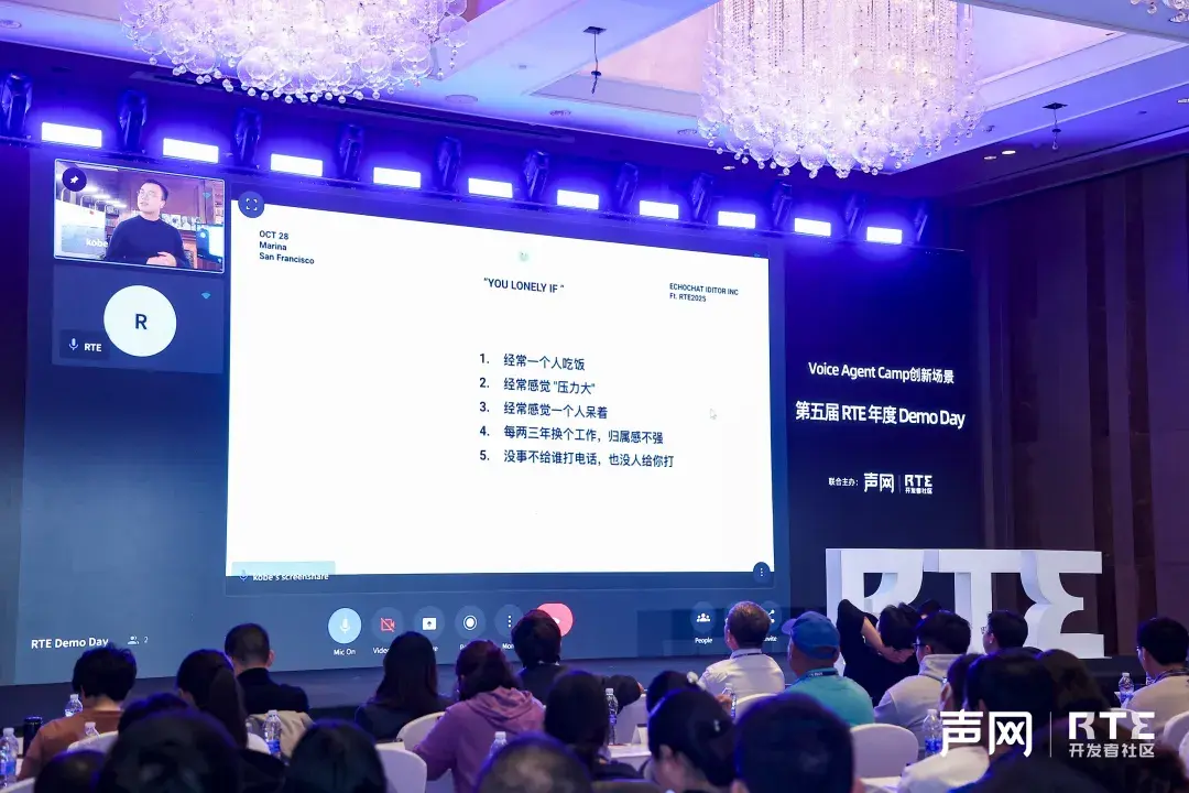 「Voice Agent Camp」創新場景暨第五屆 RTE 年度 Demo Day 線下開秀。來自 Voice Agent Camp 的 4 個優秀項目,以及 3 個海內外多模態 AI 項目、3 個 RTE 開發者社區優秀項目,用 3 小時高能 Demo 交出一份「實時互動 × 對話式 AI」的年度答卷。