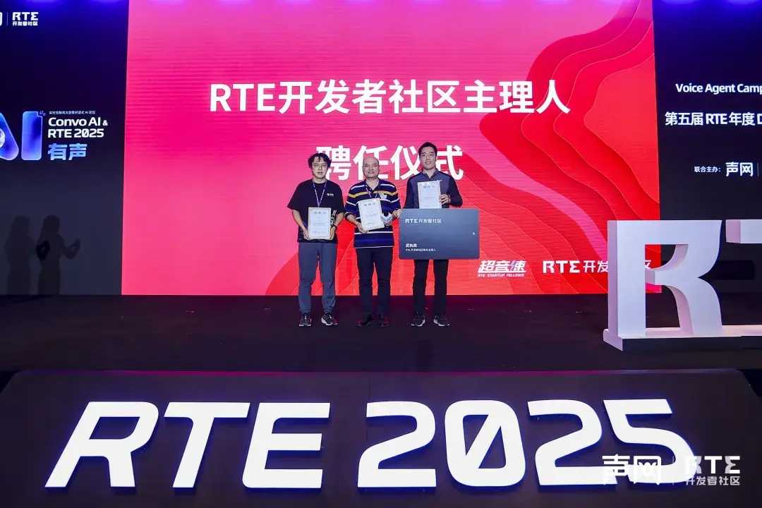 2024 年 10 月至今這一年來,超過 2000 位開發者在對話式 AI 和 Voice Agent 領域裏,多位 RTE 開發者社區聯合主理人也一起深度參與了 RTE 開發者社區的共建和共同成長。在年度 Demo Day 現場,RTE 開發者社區還發起了非常有意義的環節——社區主理人聘任儀式。