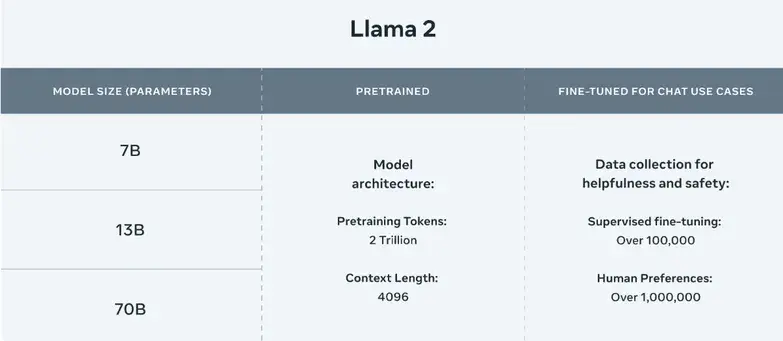 Llama 2 的另一個優勢是它提供了一系列具有不同大小和功能的模型。根據用户的需求和資源,他們可以選擇以下型號: