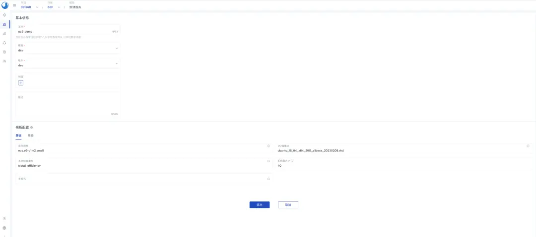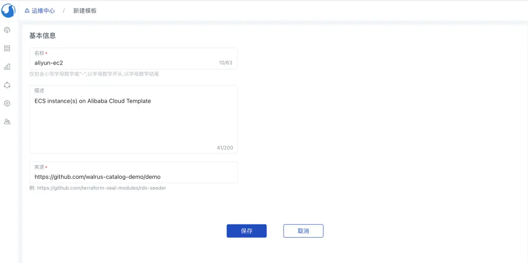 運維中心下的模板管理,使用我們剛剛創建的模板新建一個模板,這裏我們將模板命名為aliyun-ec2。