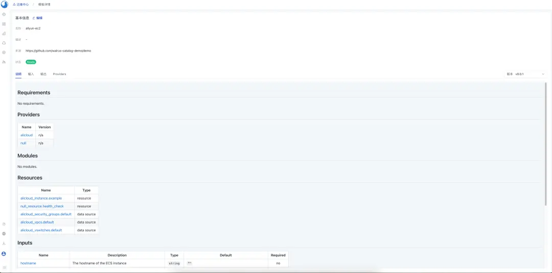 模板是 Walrus 的核心功能之一,模板創建完成後用户可以重複使用,並在使用過程中逐漸沉澱研發和運維團隊的最佳實踐,進一步簡化服務及資源的部署。用户可以使用 HCL 語言自定義創建模板,也可以一鍵複用 Terraform 社區中上萬個成熟的 Module。在本文中,我們將以阿里雲 EC2 為例,介紹如何創建 Walrus 阿里雲 EC2 模板並使用它在阿里雲上創建 ECS 實例服務。