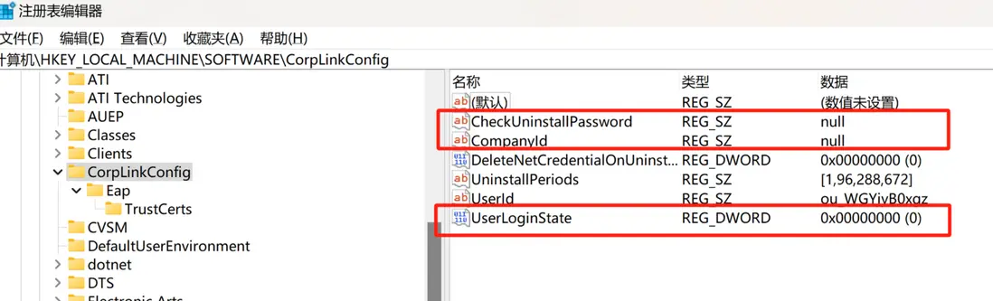 計算機\HKEY_LOCAL_MACHINE\SOFTWARE\CorpLinkConfig