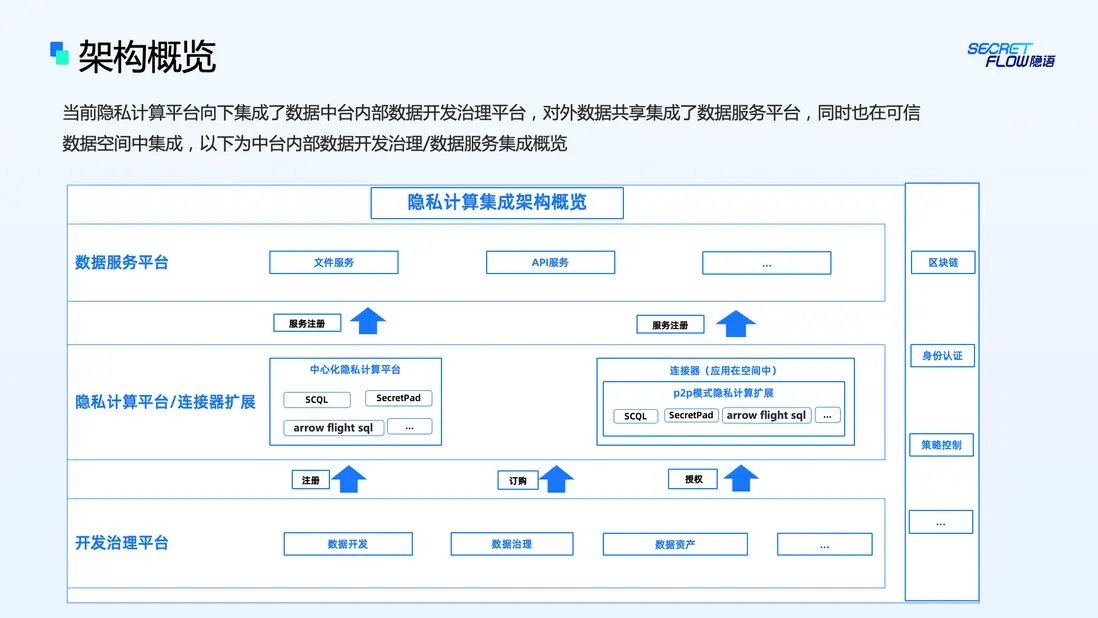 在部署模式上,平台內部採用 中心化部署,外部則基於 P2P 模式。外部架構也有進一步的演進:我們正在與可信數據空間對接,並計劃通過連接器打通更多可信協同能力。