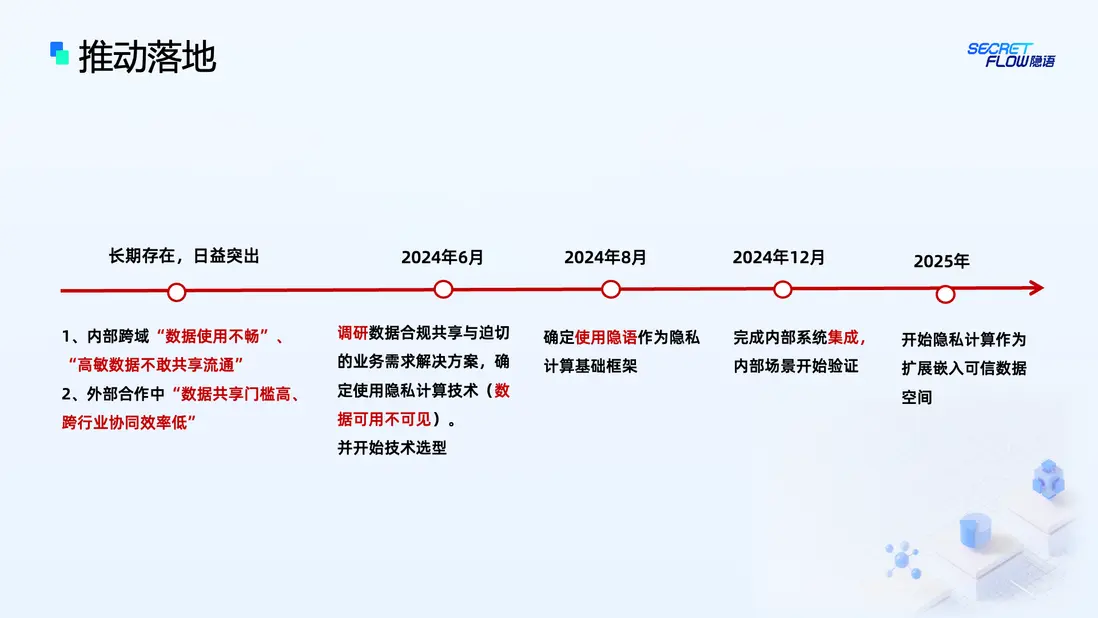 這個是真正投入隱私計算技術研究,開始搭建平台的起點。也正是從這個實踐出發,我們一步步探索出了適合內部業務場景的技術架構與應用路徑。