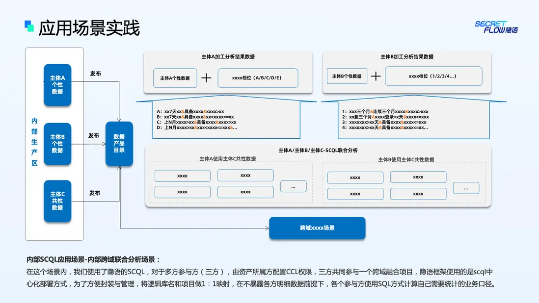 在此基礎上,主體A和主體B之間可以採用不同的檔位(如A、B、C、D vs 一、二、三、四)進行對比分析,而無需暴露任何明細數據,實現了真正意義上的 “數據不出域,聯合可計算”。