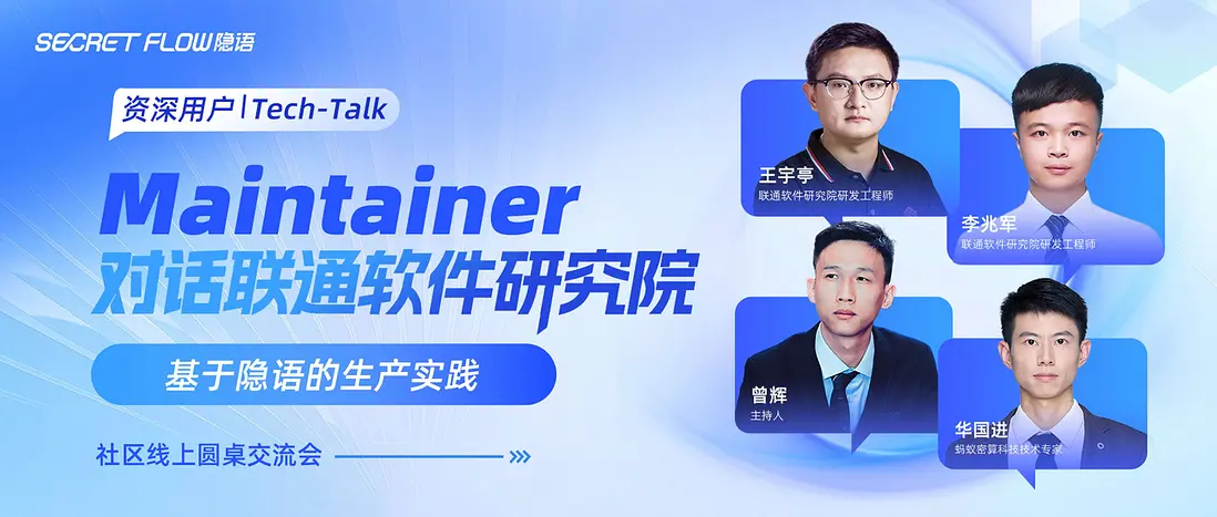 此次也會圍繞“聯通軟研院數據中台隱語開源框架集成及場景驗證”,跟大家一起探討基於隱語SecretFlow的場景最佳實踐、二次開發等技術話題,進行技術分享與深度解析。