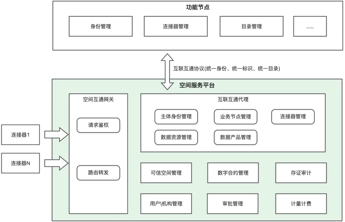 - 空間互通網關:提供請求鑑權,請求路由轉發的能力,支撐連接器與空間服務平台的接口互通。