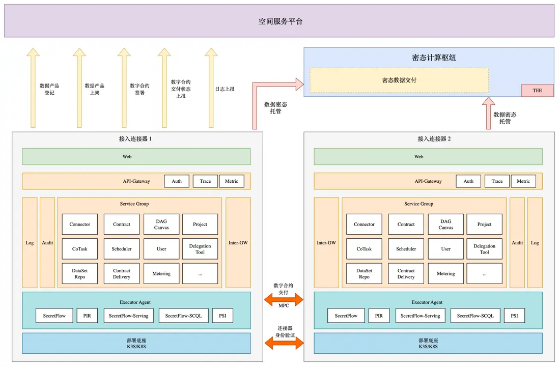 在中心部署的隱私計算平台,100%包含隱語隱私計算能力,並可與數據空間服務平台實現無縫對接。