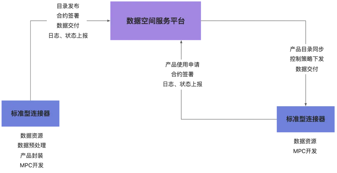 - 數據提供方、數據使用方均通過標準連接器接入數據空間。