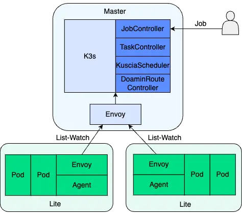 - Kuscia Scheduler:負責 Task 在一個參與方下的多個 Pod 之間的 Co-Scheduling 調度和 Pod 生命週期管理。
