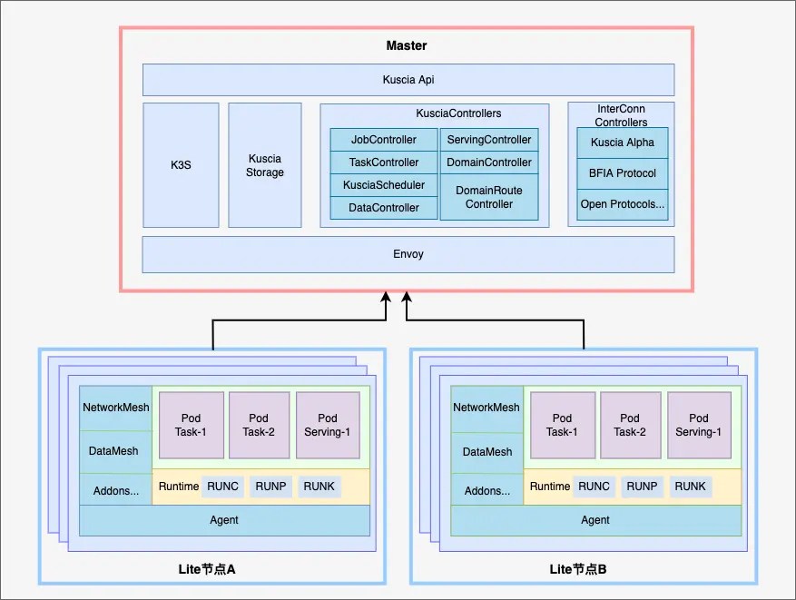 - InterConn Controllers:互聯互通控制器,負責不同控制平面下的節點互通,從而協同完成多方任務調度,支持多種互聯互通協議。
