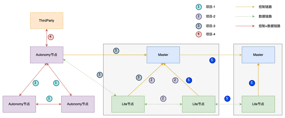 中心化組網模式下,多個節點共享控制平面,控制平面負責管理多個節點的資源和任務調度。這種模式下節點佔用資源較少,稱為 Lite 節點。