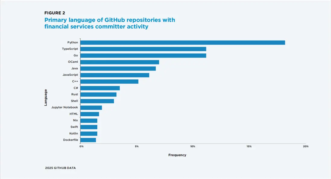 圖13:金融服務領域提交者參與的GitHub倉庫的主要編程語言