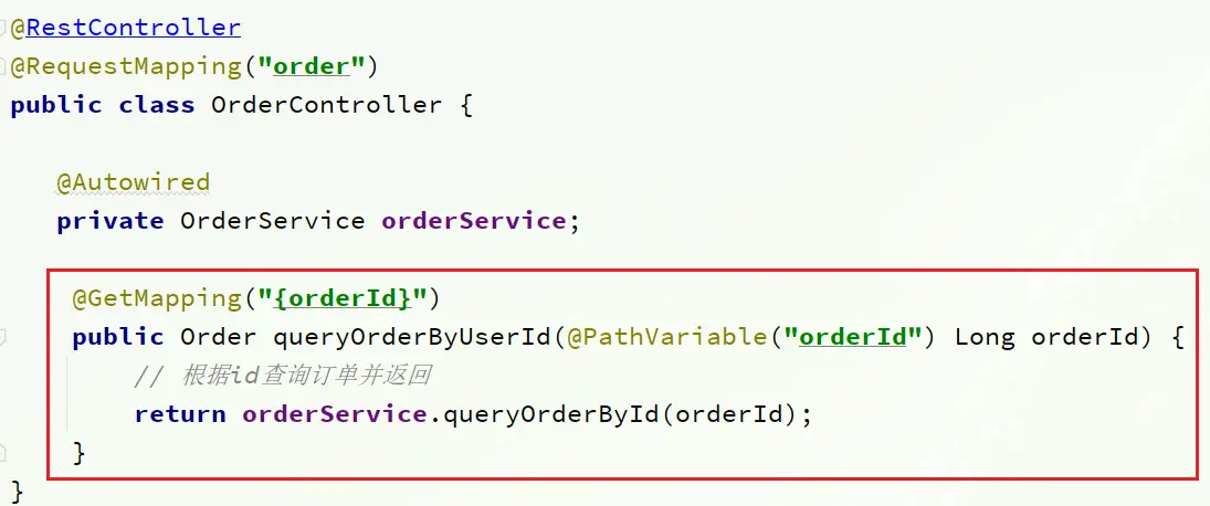 在order-service服務中,有一個根據id查詢訂單的接口: