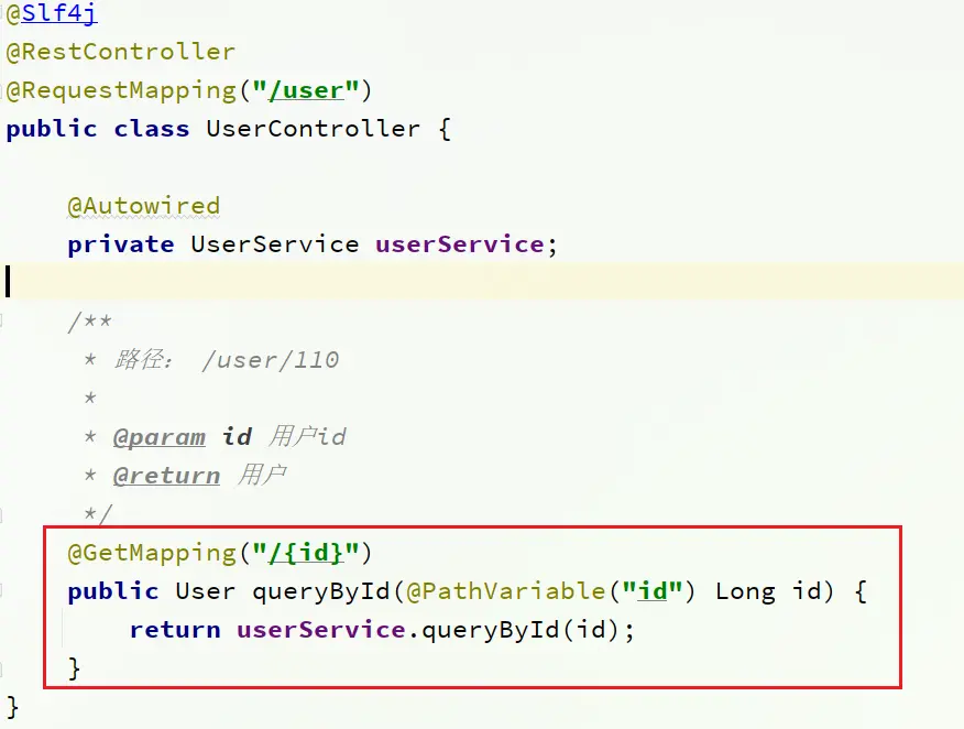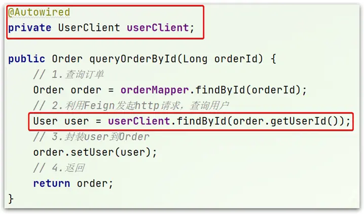 • 修改order-service服務中的OrderService類中的queryOrderById方法,根據Order對象中的userId查詢User