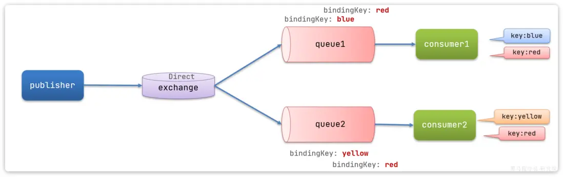 return BindingBuilder.bind(directQueue2).to(directExchange).with("red");