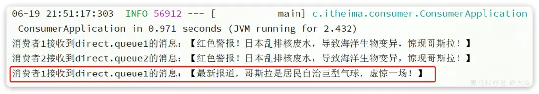 這個時候如果有消費者監聽了MQ的hello.queue1hello.queue2隊列,自然就能接收到消息了。