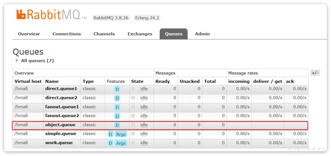 然後再次查看queues選項卡,會發現之前的隊列已經看不到了: