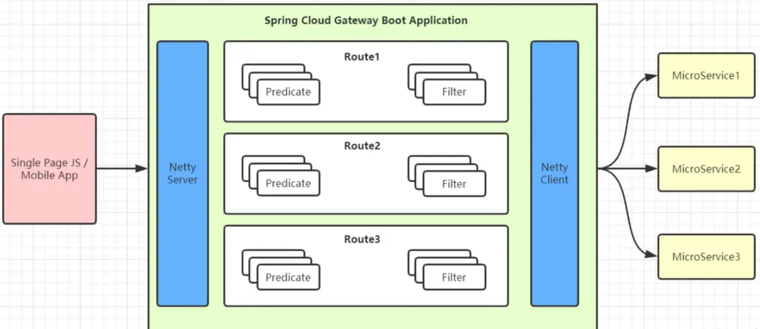 在Spring Cloud Gateway裏,有三個關鍵組件:
