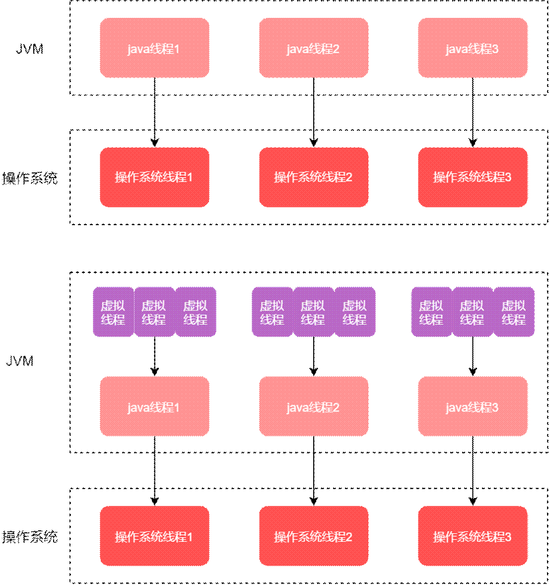 與虛擬地址可以映射到物理內存類似,java是將大量的虛擬線程映射到少量的操作系統線程,帶來了一些好處: