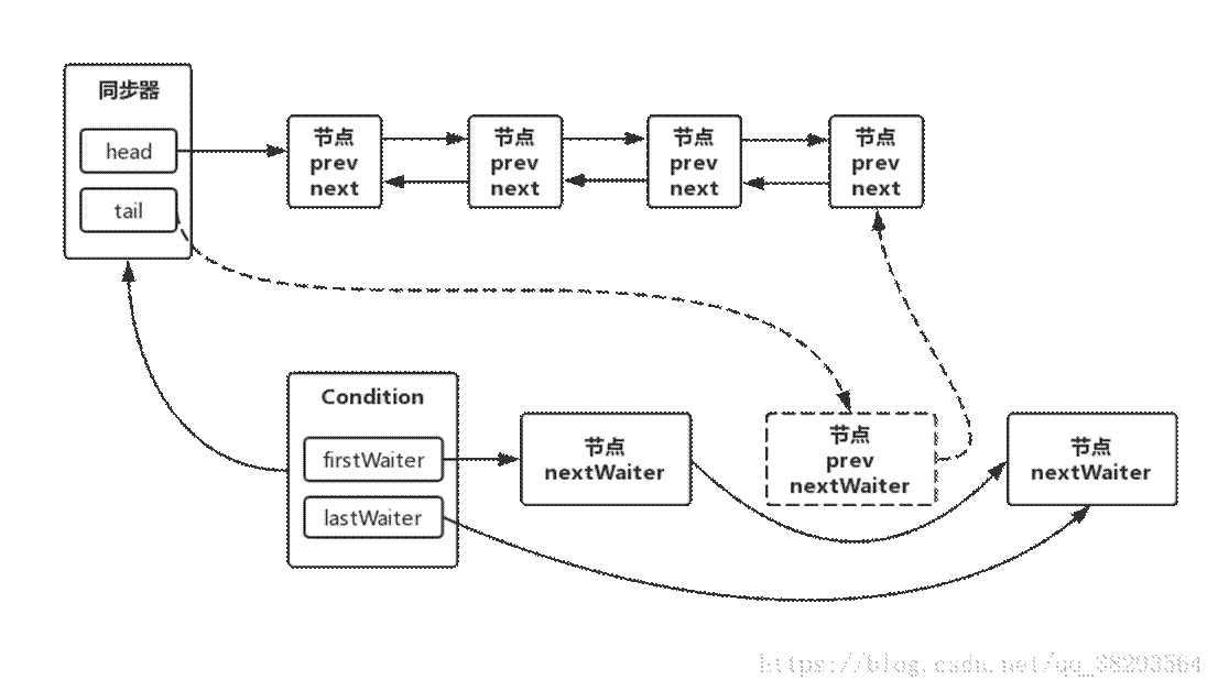節點從等待隊列移動到同步隊列的過程如下圖所示: