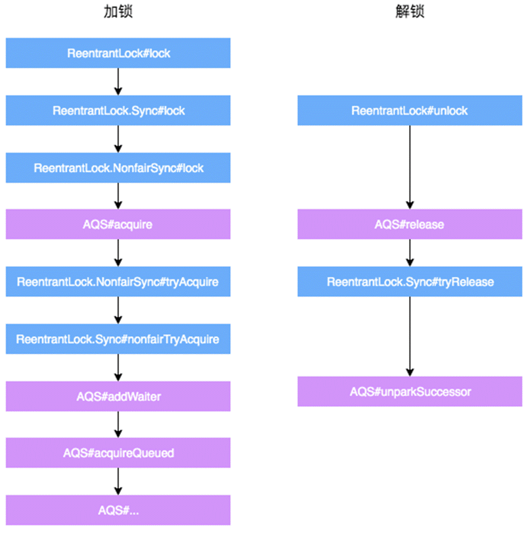 以ReentrantLock的非公平鎖為例,將加鎖和解鎖的交互流程單獨拎出來強調一下