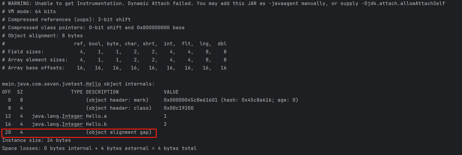 果然,為了對齊8字節,多了4字節的填充,整個對象實例大小變成了24字節。