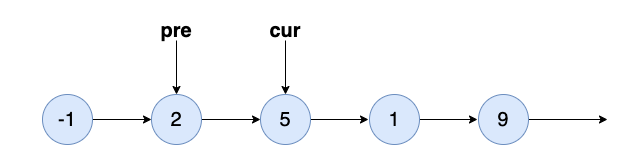 pre.next = cur.next;