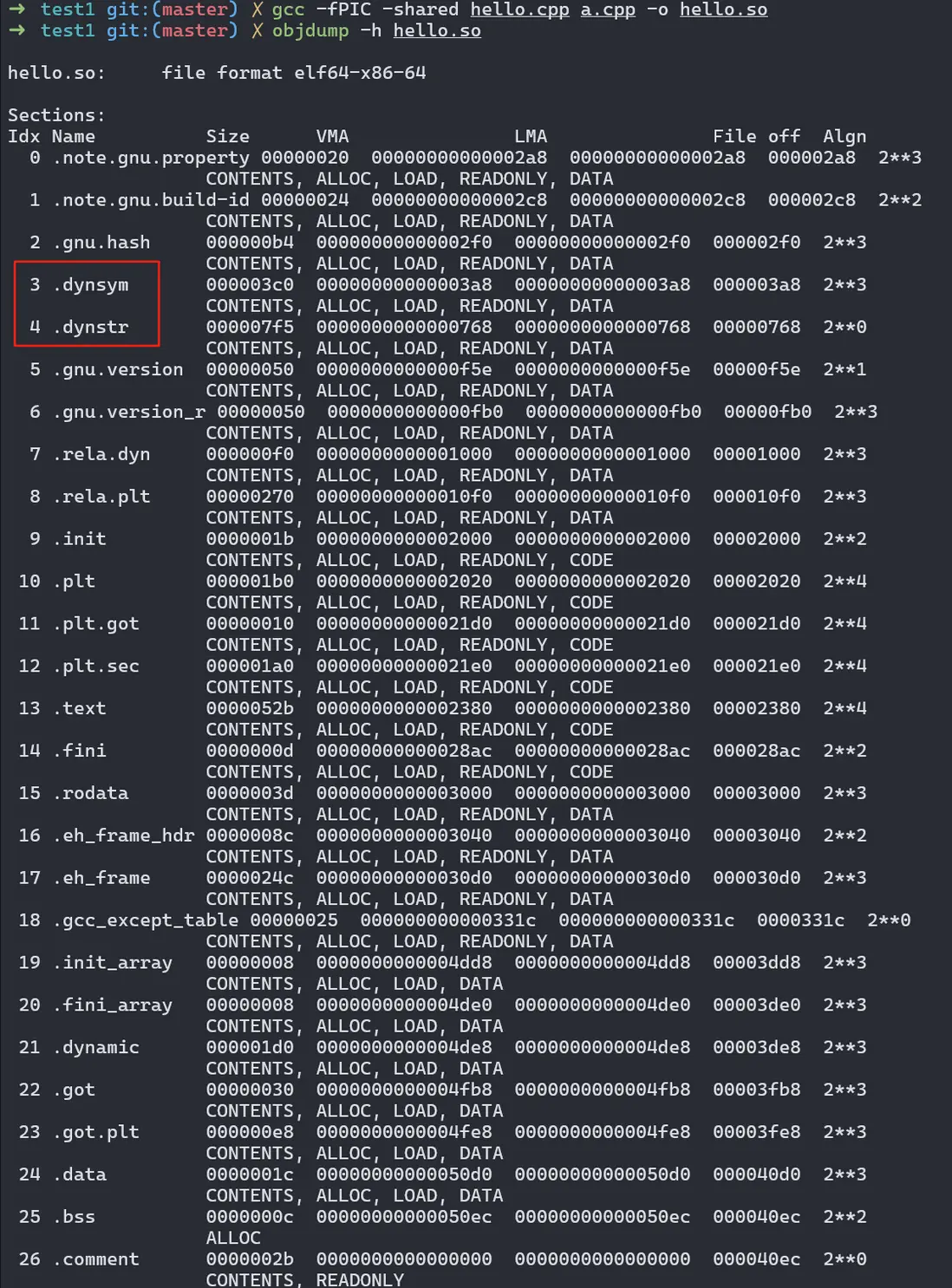 動態鏈接庫通常包含一個動態符號表 .dynsym,記錄了動態鏈接所需的導出符號和導入符號。動態字符串表 .dynstr 會存儲這些符號的名稱。這些表為動態鏈接器提供了必要的信息,以便在運行時完成符號決議和重定位。