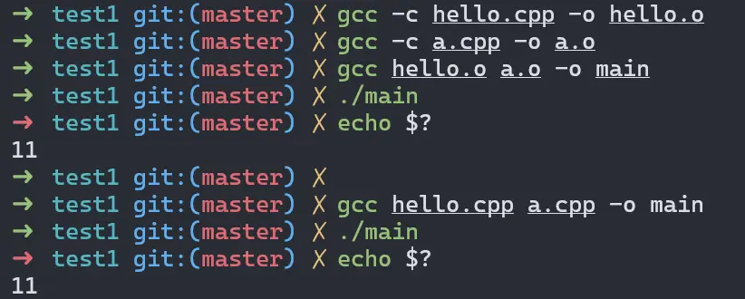 前面的預編譯、編譯、彙編可以用一個 -c 命令直接完成,也可直接把源碼給到 gcc 命令,直接完成鏈接並生成可執行文件: