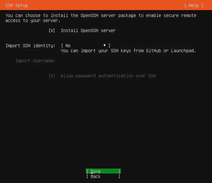 3 SSH Setup部分,選擇Install OpenSSH Server。因為需要宿主機上通過ssh連接虛擬機