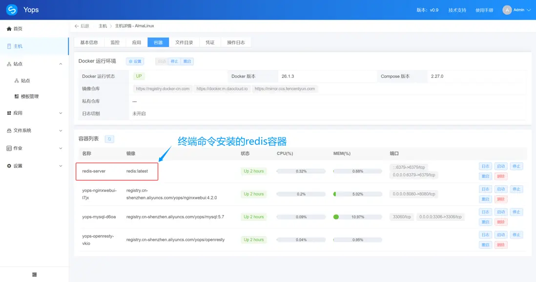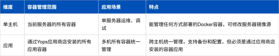 這一維度適合對 單服務器的運維和調試場景,確保所有容器都能通過Yops可視化界面進行管理。