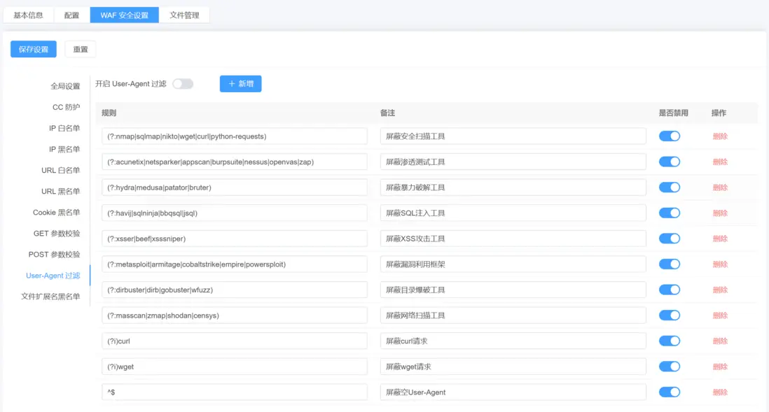 User-Agent 過濾: 識別並阻斷惡意爬蟲或攻擊工具的訪問請求。